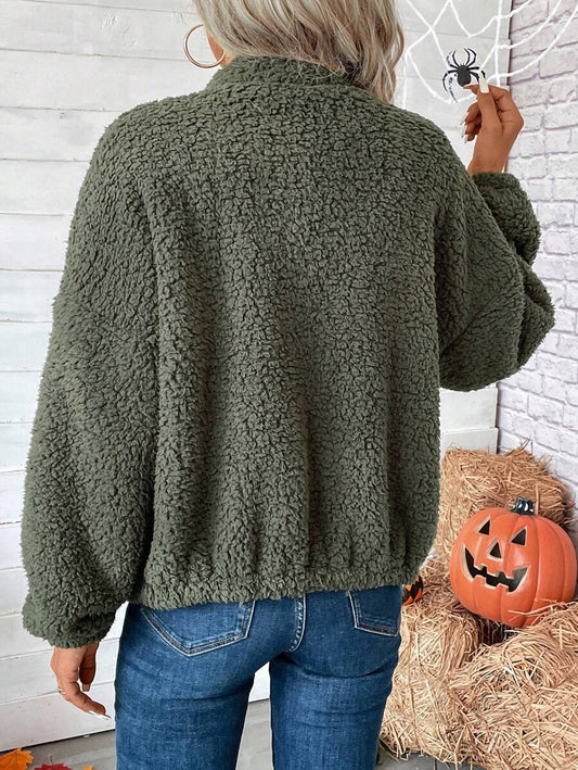 Women's Zip Up Drop Shoulder Teddy Jacket
