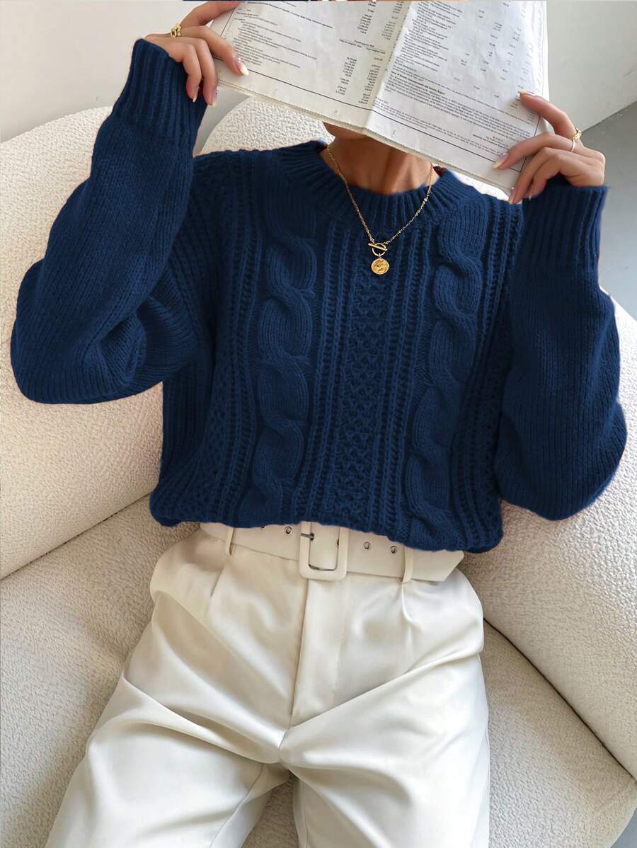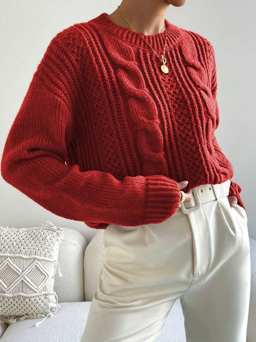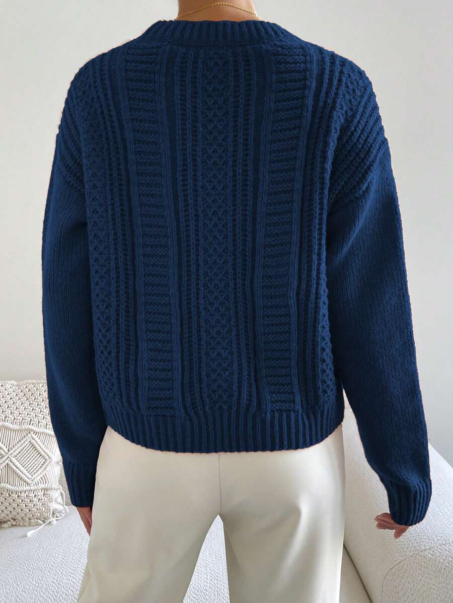 Chiquease 1pc Women Oversized Solid Color Round Neck Drop Shoulder Long Sleeve Casual Pullover Sweater, Autumn/Winter,Long Sleeve Tops Knit Pullover Fall Outfit