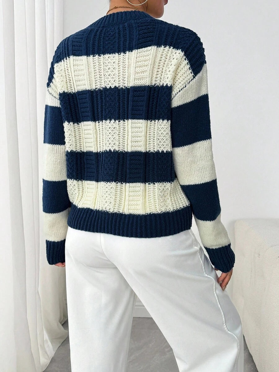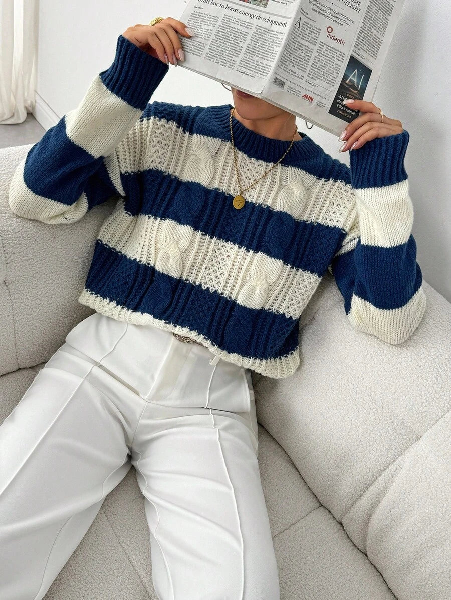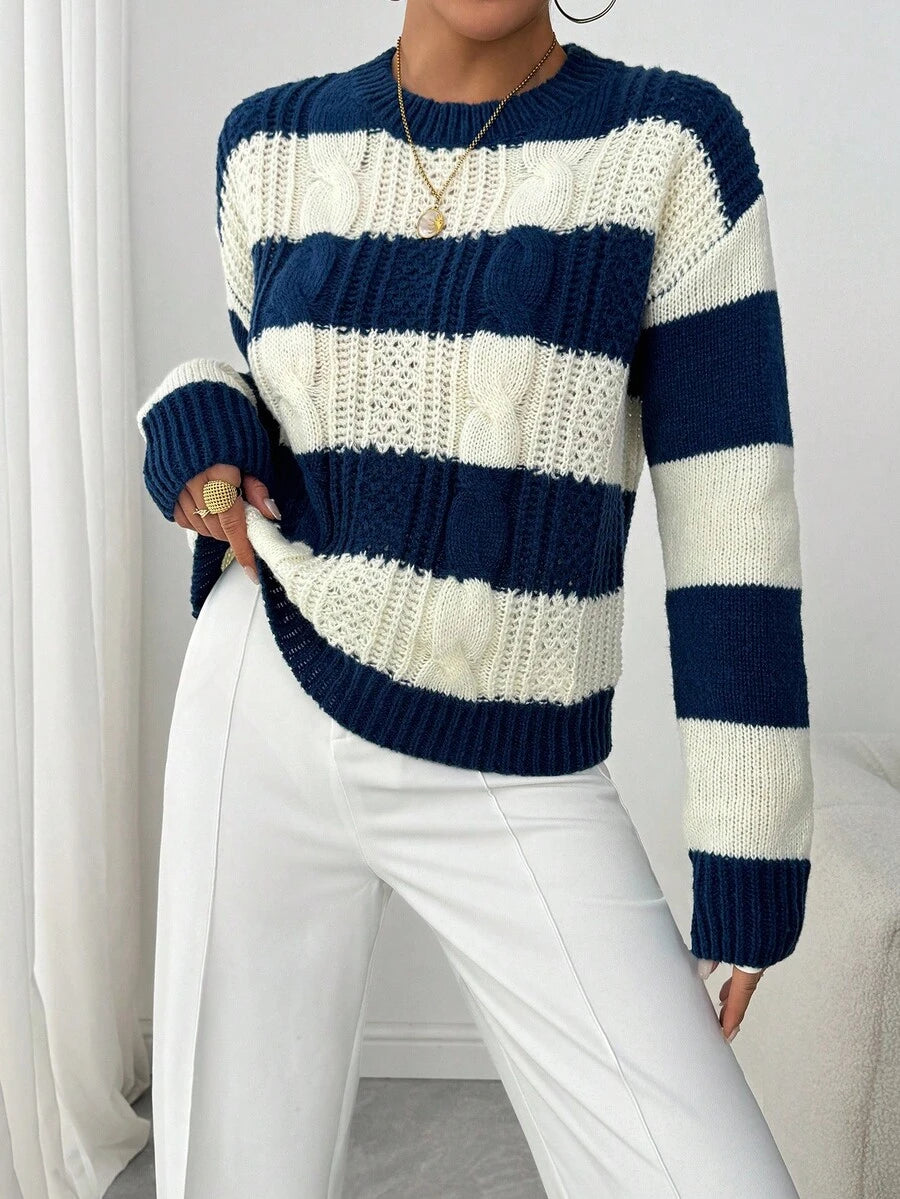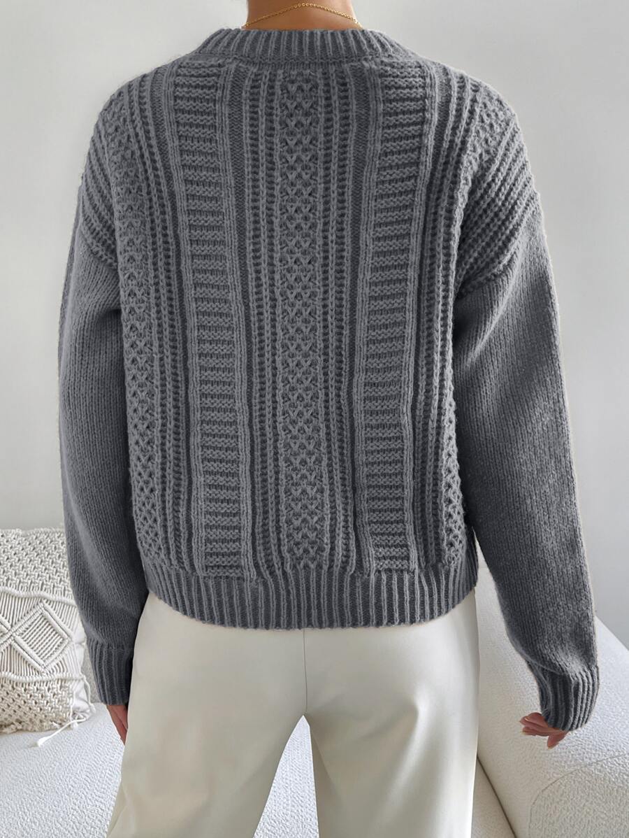 Chiquease 1pc Women Oversized Solid Color Round Neck Drop Shoulder Long Sleeve Casual Pullover Sweater, Autumn/Winter,Long Sleeve Tops Knit Pullover Fall Outfit