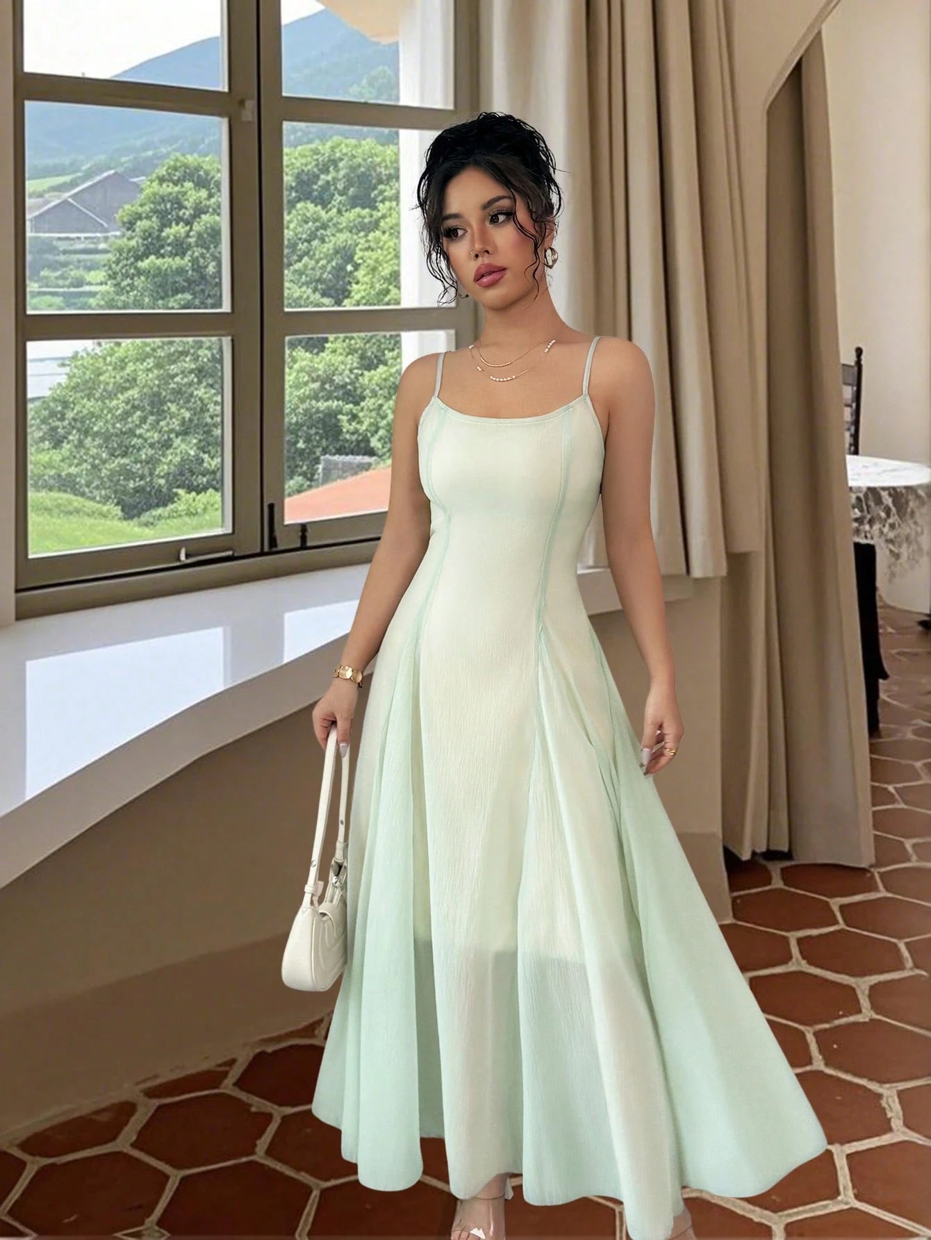Women's Spring/Summer Sleeveless Long Dress, Green, Fashionable & Romantic